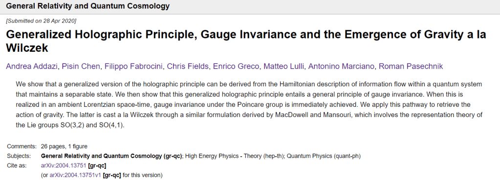 We show that a generalized version of the holographic principle can be derived from the Hamiltonian description of information flow within a quantum system that maintains a separable state. We then show that this generalized holographic principle entails a general principle of gauge invariance. When this is realized in an ambient Lorentzian space-time, gauge invariance under the Poincare group is immediately achieved. We apply this pathway to retrieve the action of gravity. The latter is cast a la Wilczek through a similar formulation derived by MacDowell and Mansouri, which involves the representation theory of the Lie groups SO(3,2) and SO(4,1).