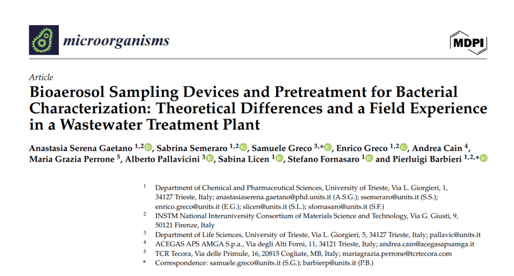 Studies on bioaerosol bacterial biodiversity have relevance in both ecological and health contexts, and molecular methods, such as 16S rRNA gene-based barcoded sequencing, provide efficient tools for the analysis of airborne bacterial communities. Standardized methods for sampling and analysis of bioaerosol DNA are lacking, thus hampering the comparison of results from studies implementing different devices and procedures. Three samplers that use gelatin filtration, swirling aerosol collection, and condensation growth tubes for collecting bioaerosol at an aeration tank of a wastewater treatment plant in Trieste (Italy) were used to determine the bacterial biodiversity. Wastewater samples were collected directly from the untreated sewage to obtain a true representation of the microbiological community present in the plant. Different samplers and collection media provide an indication of the different grades of biodiversity, with condensation growth tubes and DNA/RNA shieldTM capturing the richer bacterial genera. Overall, in terms of relative abundance, the air samples have a lower number of bacterial genera (64 OTUs) than the wastewater ones (75 OTUs). Using the metabarcoding approach to aerosol samples, we provide the first preliminary step toward the understanding of a significant diversity between different air sampling systems, enabling the scientific community to orient research towards the most informative sampling strategy.